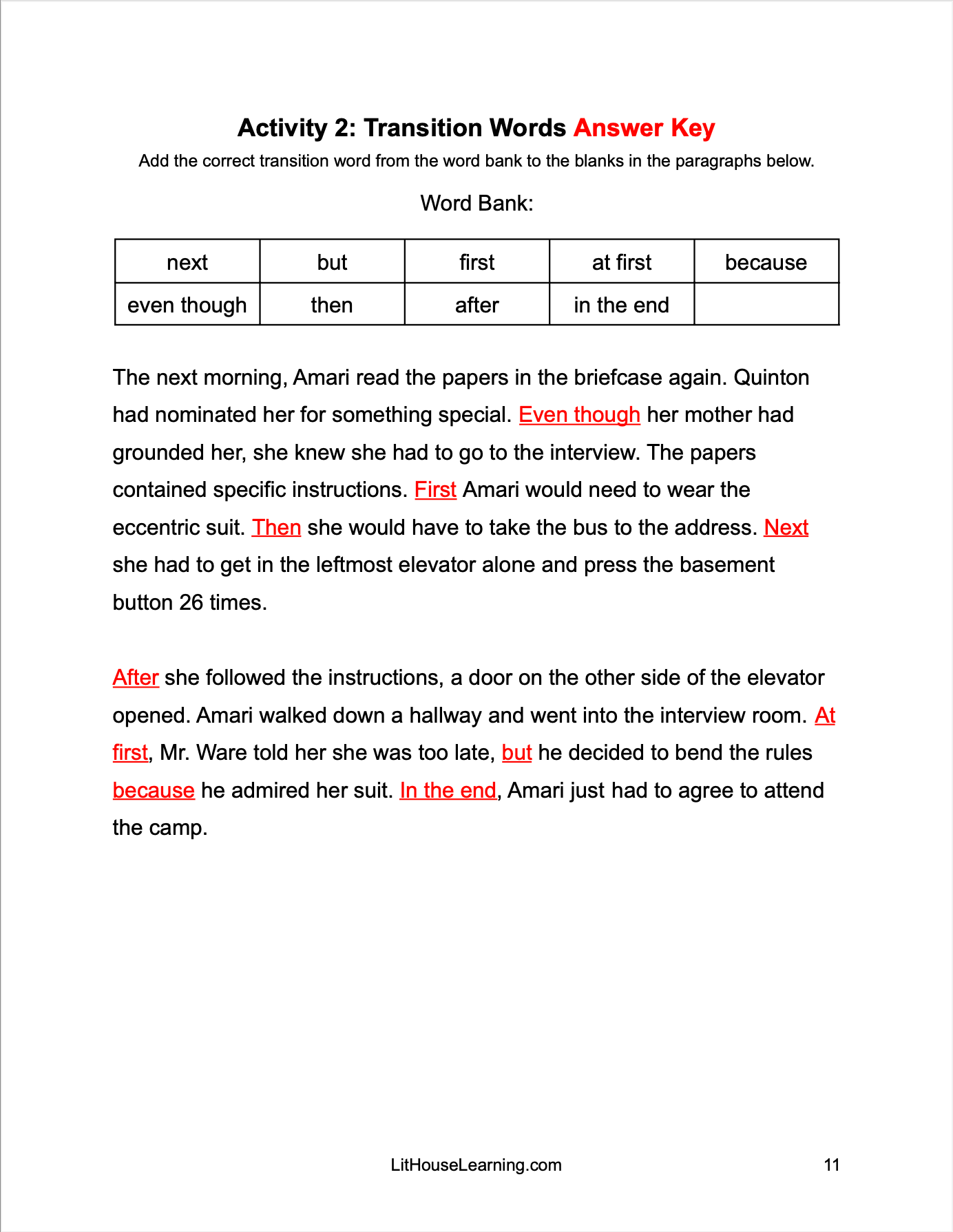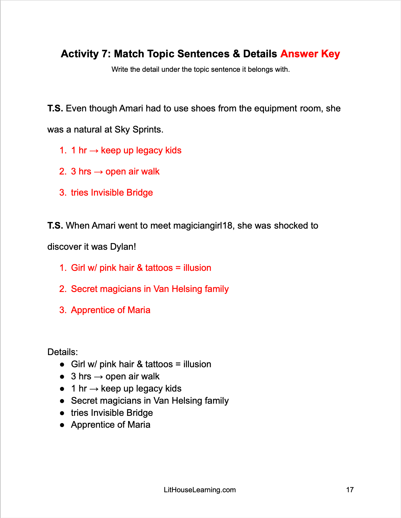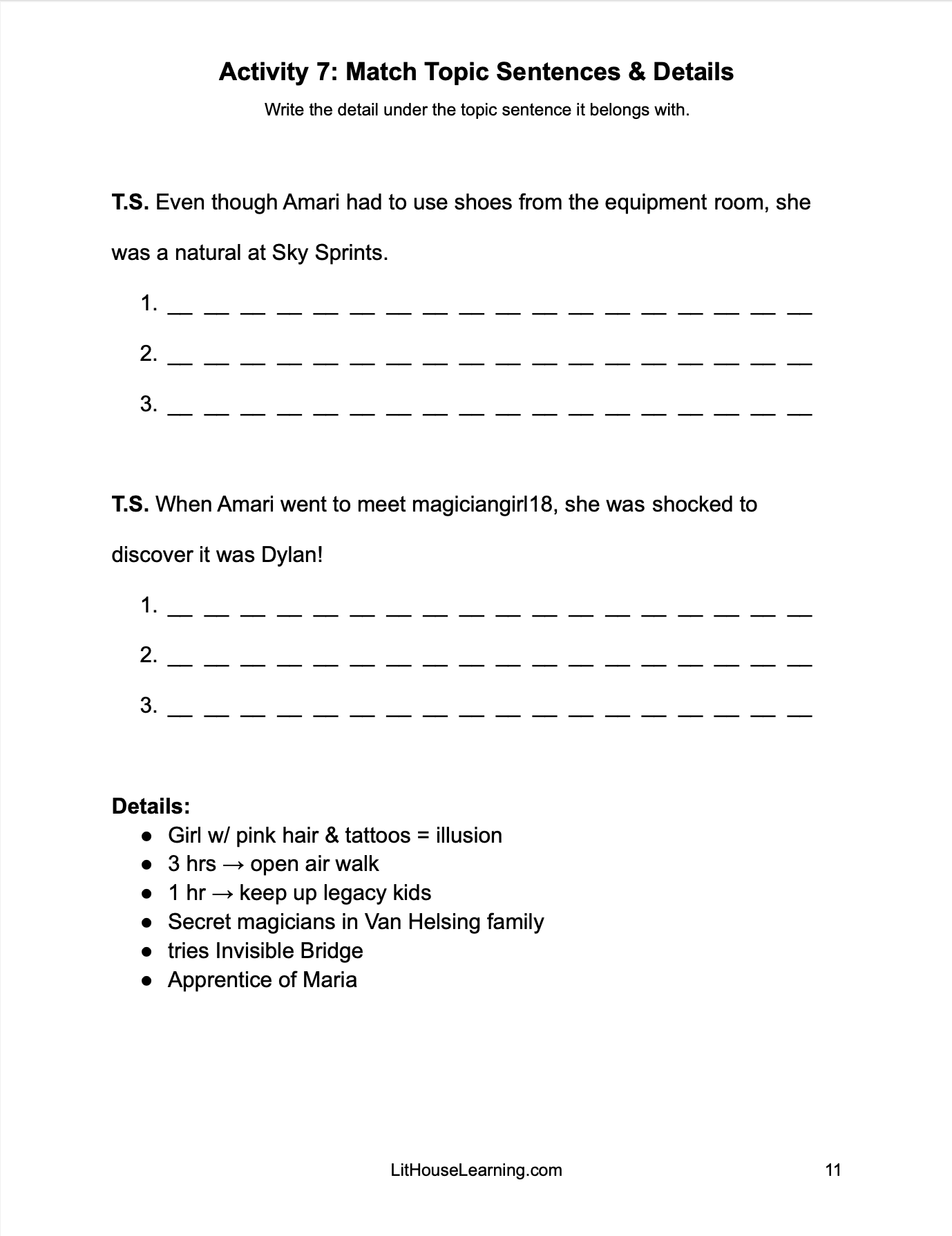 For 12 days, your learner will read, take notes, complete sentence and paragraph-level writing activities, and study vocabulary. On day 13, your student will select the prompt for their final project paragraph and brainstorm details for it. On day 14, you will discuss the note-taking project with your learner, and they will also outline and draft a paragraph. On day 15, they will revise and edit their paragraph to produce a polished final draft. On day 16, you can have a themed book club with further discussion questions, snacks, and activities.