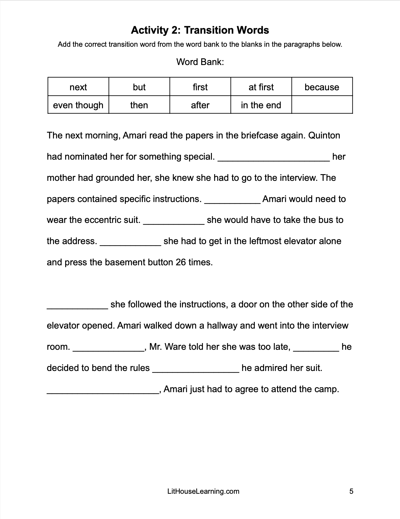 This is a 4-week novel study that includes paragraph-level writing activities, a guided note-taking project, and a vocabulary journal. There is an optional schedule to spread the novel study over 5 weeks as well since it is a longer novel.