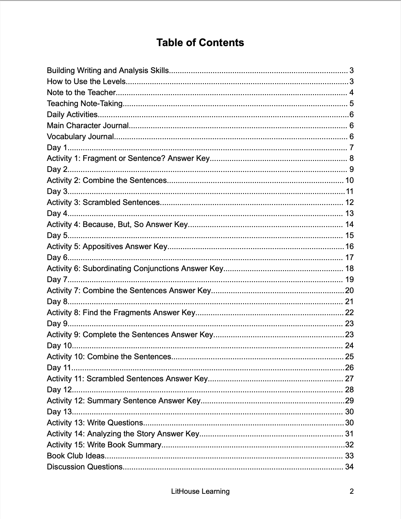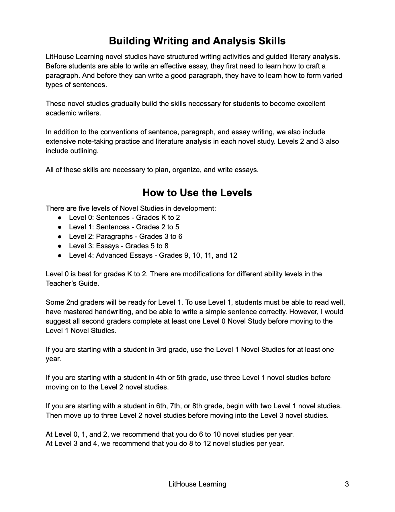 Choose Level 0, Level 1, Level 2, or a Bundle with writing activities for grades K to 7. With the bundle, you can enjoy reading the same novel with the whole family & provide your kids with differentiated writing activities!