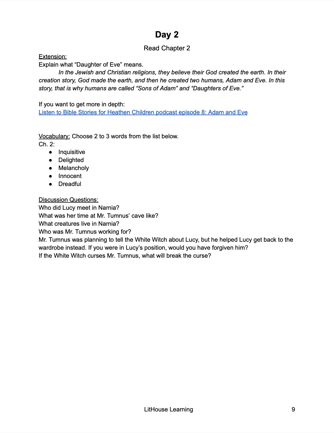 A novel study for The Lion, the Witch and the Wardrobe by C.S. Lewis
