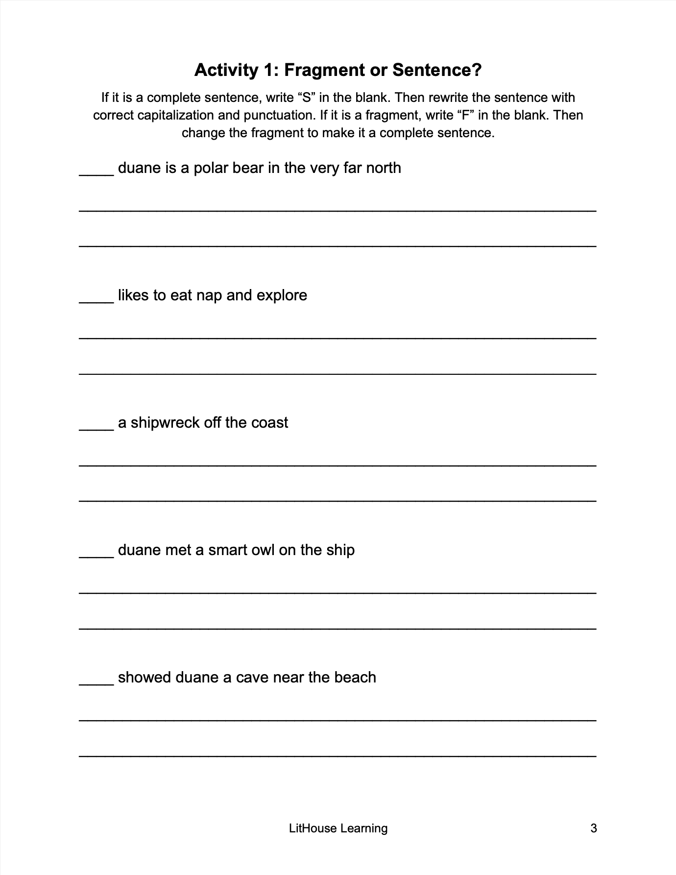 - 14 sentence writing activities