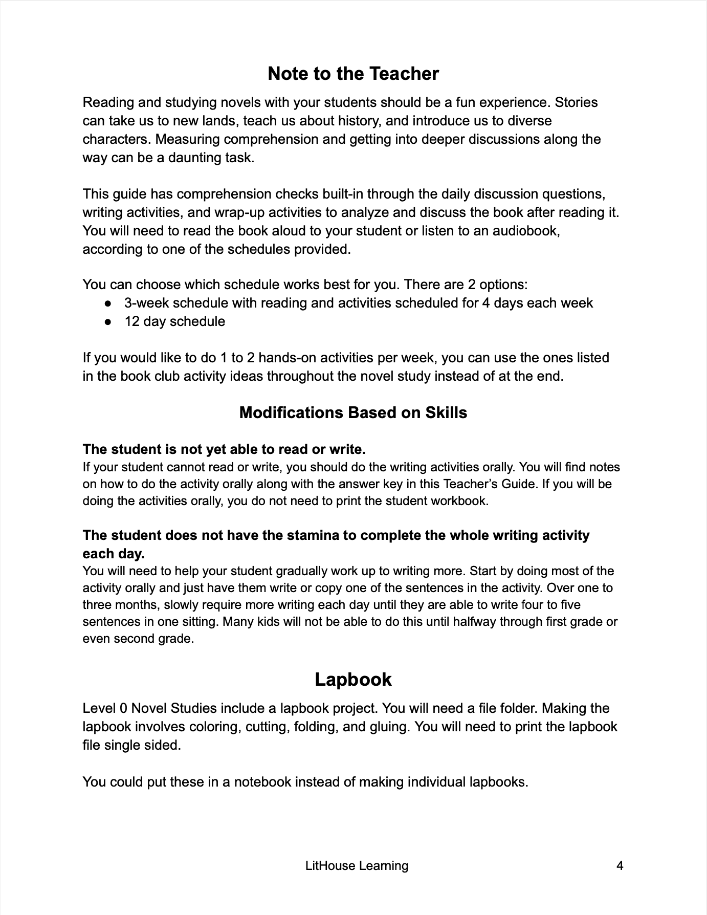 Level 0 Novel Studies are best for kindergarten, first, and second graders.
