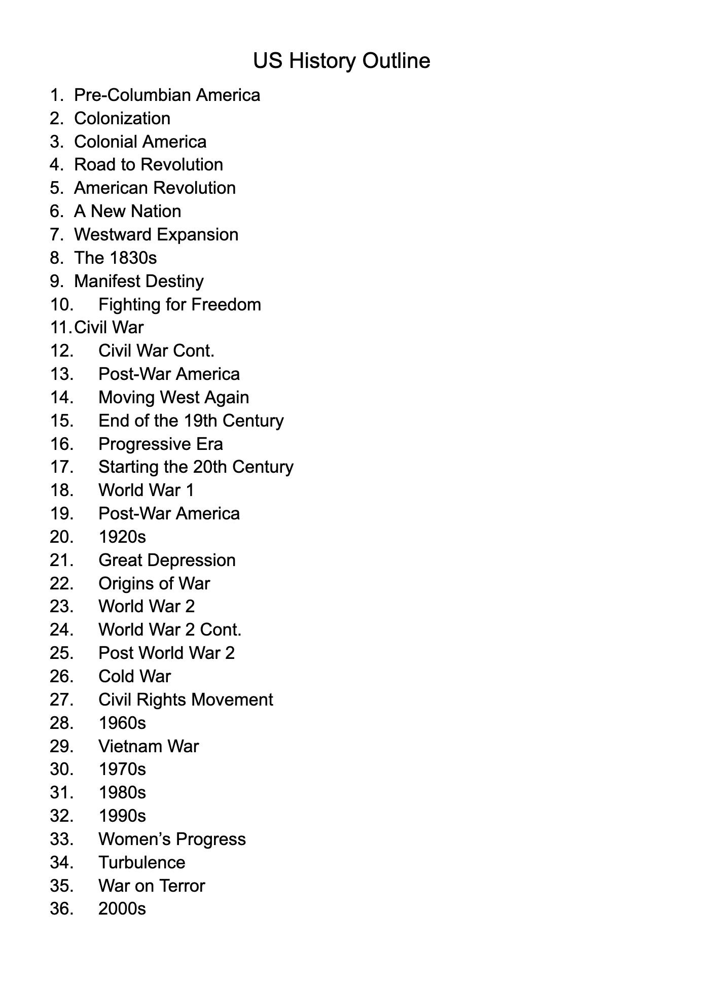 36 Weeks of US History from Pre-Columbian North America through 2015.