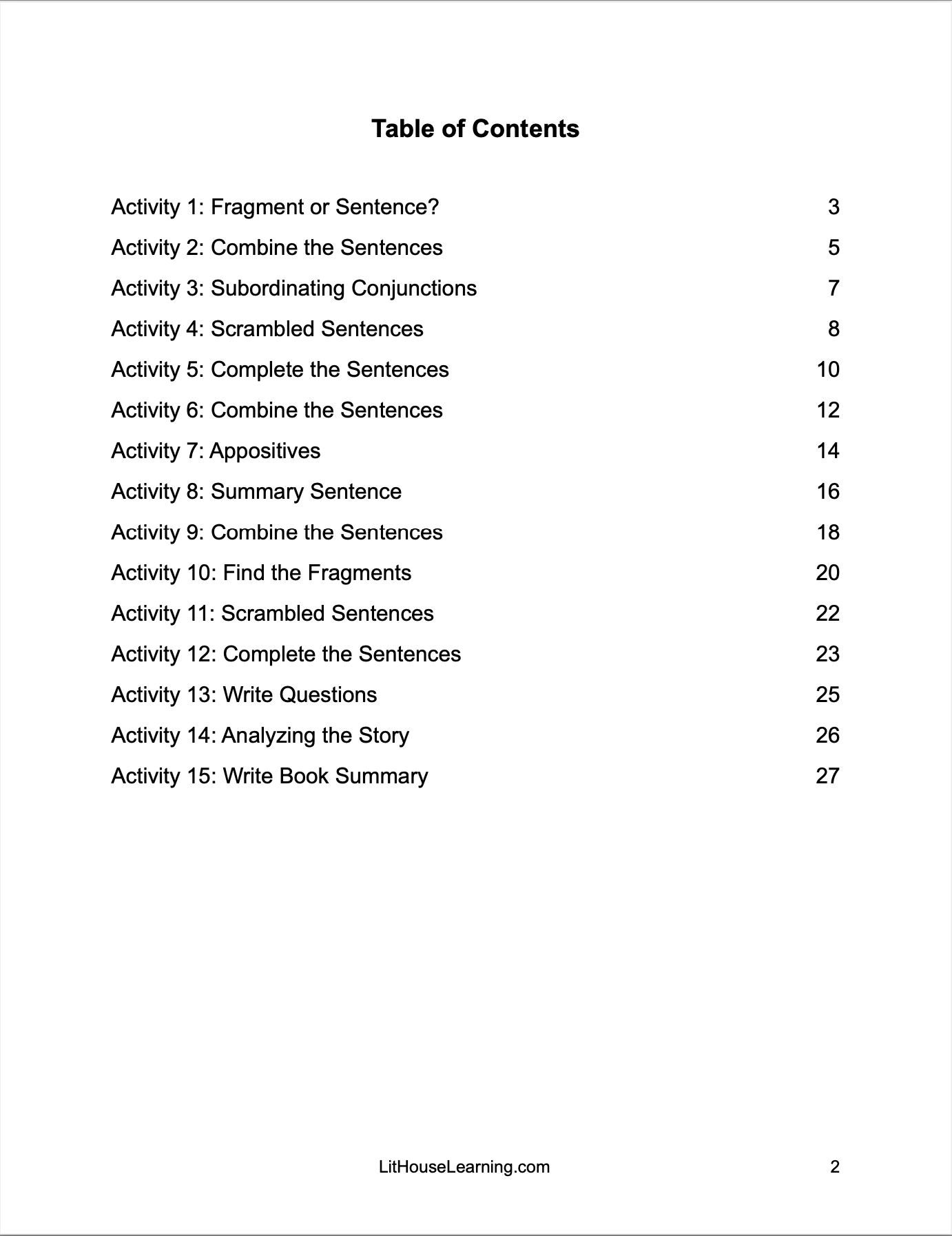 - 15 Sentence-Level Writing Activities