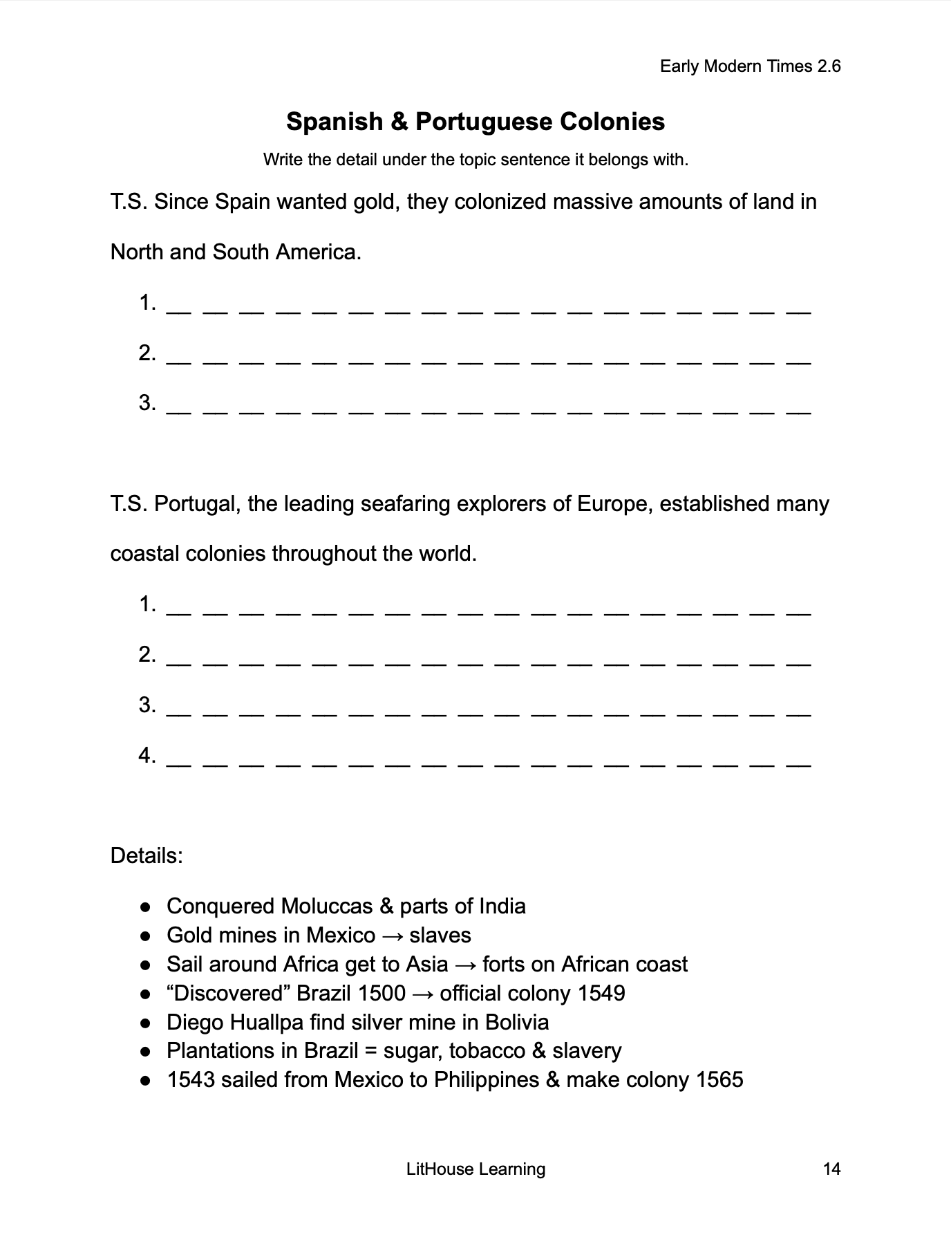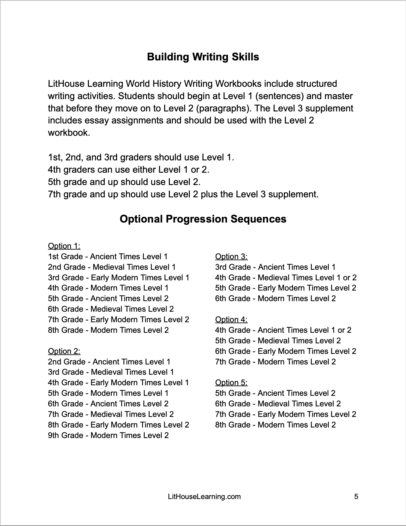 Click here to see how the writing activities align with encyclopedias and chapters from CC and SOTW.