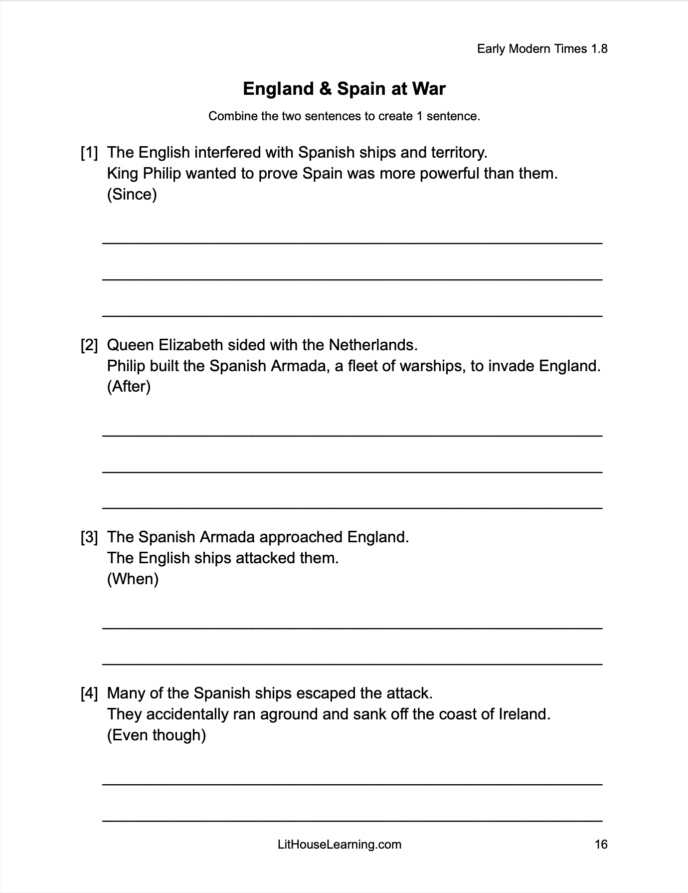 This writing workbook contains 107 structured writing activities covering various topics from Early Modern History. It covers the years 1500 to 1850.