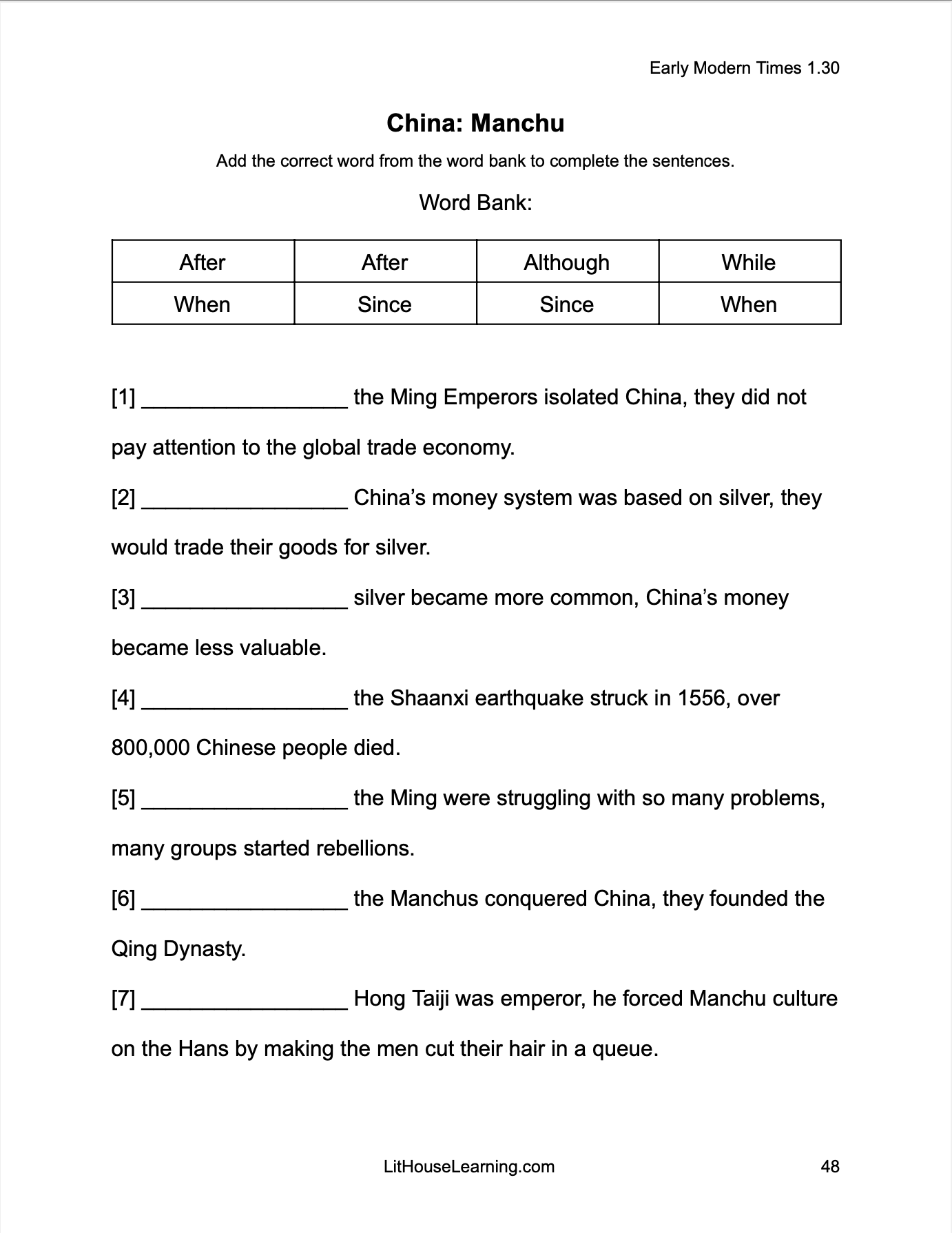 Use this writing workbook to promote deeper learning and give your students valuable writing practice. You can easily pair the writing activities with your favorite world history books, curriculum, encyclopedia, online resource, or videos.